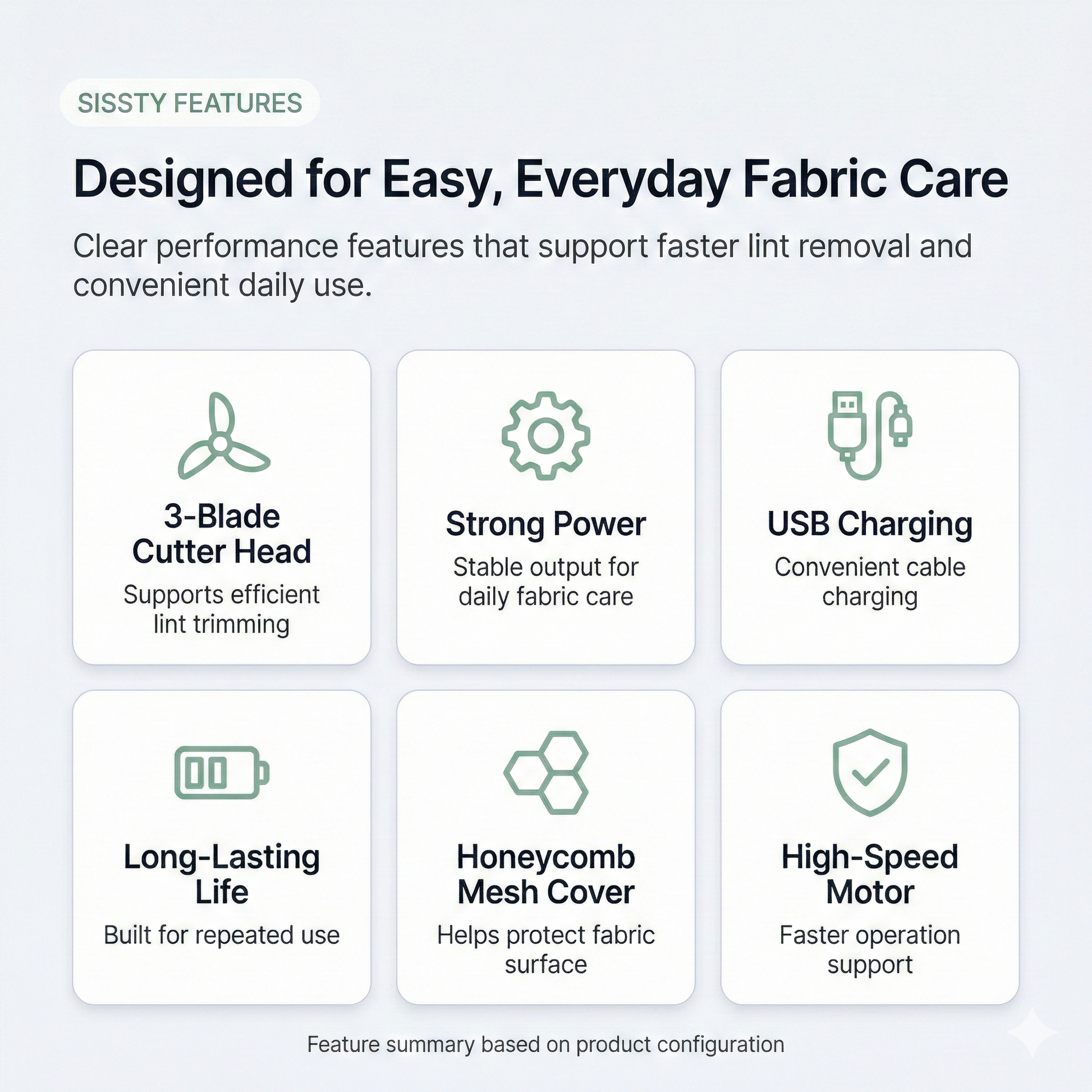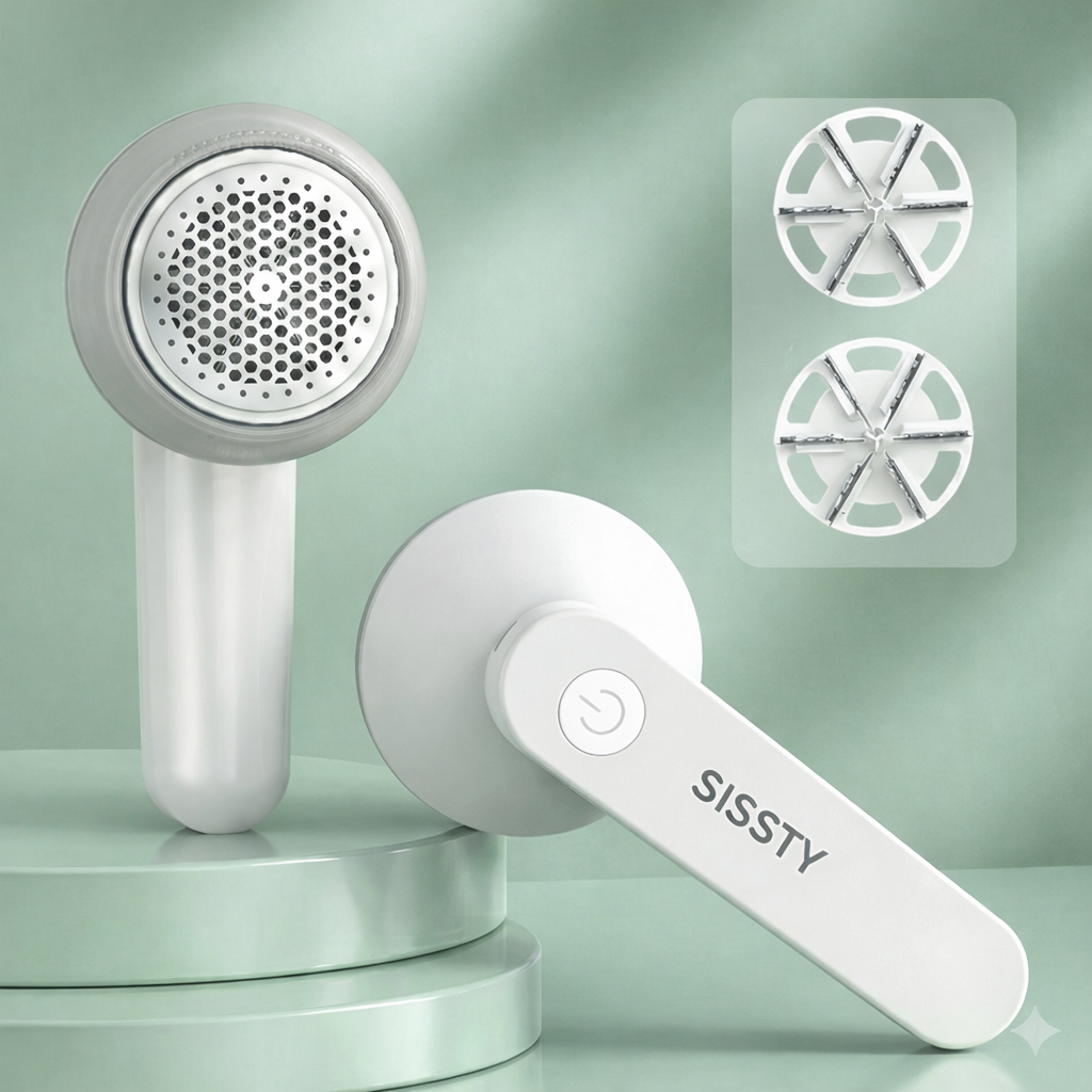 SISSTY Fabric Shaver Pro | Rechargeable 3-Speed Lint Remover (2+1 6-Leaf Blades)